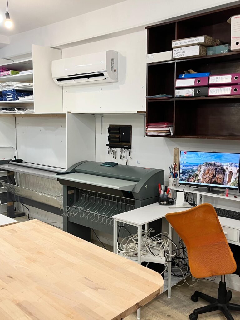 Du traceur grand format à la brodeuse 8 fils, notre parc machine professionnel garantit des finitions soignées pour chaque commande, petite ou grande série.